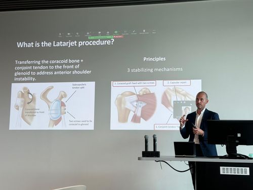 The Latarjet procedure, named after the French surgeon Michel Latarjet, is a surgical technique used to treat shoulder instability. It involves transferring a piece of the coracoid process from the scapula to the front of the glenoid, enhancing the shoulder's stability. This procedure is now done arthroscopically, has gained popularity in recent years, making Dr. Karel's research presentation particularly relevant.